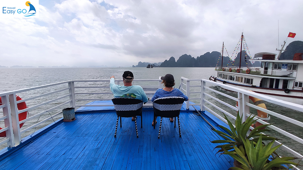 Ngồi trên du thuyền ngắm Vịnh Hạ Long