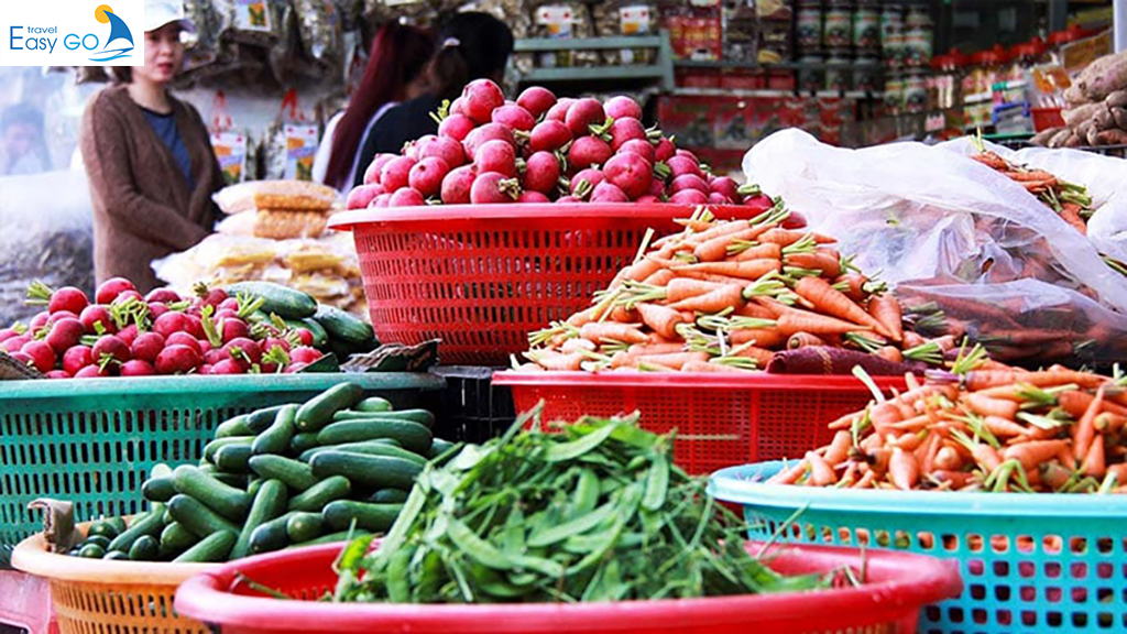 Khu bán rau củ quả - chợ Cát Bà
