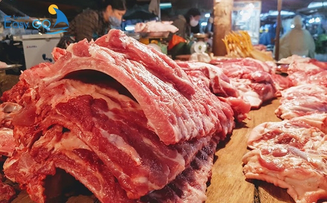 Khu bán các loại thịt - chợ Cát Bà