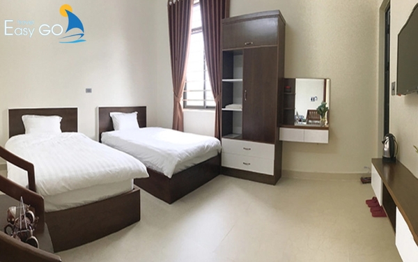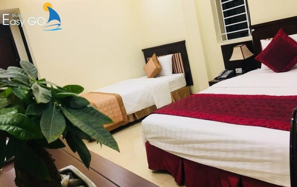 Khách sạn cũng có các hạng phòng như phòng đơn, đôi và phòng 4 tùy thuộc vào nhu cầu của từng khách hàng. Đặc biệt khách sạn còn có khu vực sinh thái với không gian cây xanh và ao cá để bạn có thể thư giãn và nghỉ dưỡng.