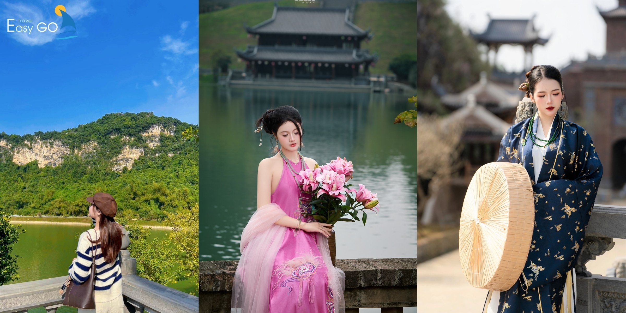 Áo dài truyền thống hoặc áo dài cách tân là lựa chọn lý tưởng, hài hòa với khung cảnh thung lũng núi đá.