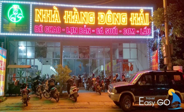 Nhà hàng Đông Hải nằm ngay tại trung tâm thị trấn Mộc Châu và vô cùng nổi tiếng với món bê chao và lẩu bê sữa - món ăn chỉ có duy nhất tại đây. Nhà hàng nổi tiếng và được nhiều du khách đánh giá cáo về chất lượng và phục vụ.