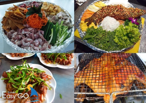 Nhà hàng cũng có đa dạng các món ăn từ những món lẩu, nướng đến các món ăn đặc sản nổi tiếng như gà đồi, cá nướng trui, nộm hoa chuối,...Các món ăn vô cùng ngon mang hương vị đặc biệt được lựa chọn nguyên liệu kĩ càng và chế biến tỉ mỉ, chắc chắn sẽ làm bạn hài lòng.
