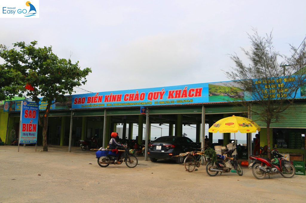 Đặc biệt, nhà hàng Sao Biển có vị trí rất đắc địa khi nằm ngay bên bãi biển Quỳnh Phương. Du khách có thể vừa được thưởng thức món ăn ngon, vừa được tận hưởng không khí mát lành từ biển.