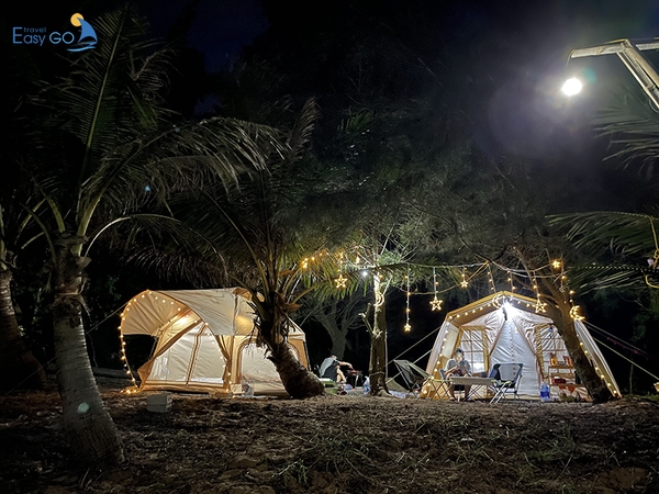 Tối: Bạn và bạn bè thuê lều trại, cắm trại, mở BBQ ngoài biển, Đây chắc chắn là trải nghiệm có một không hai khi bạn đến với tour du lịch biển Quỳnh.