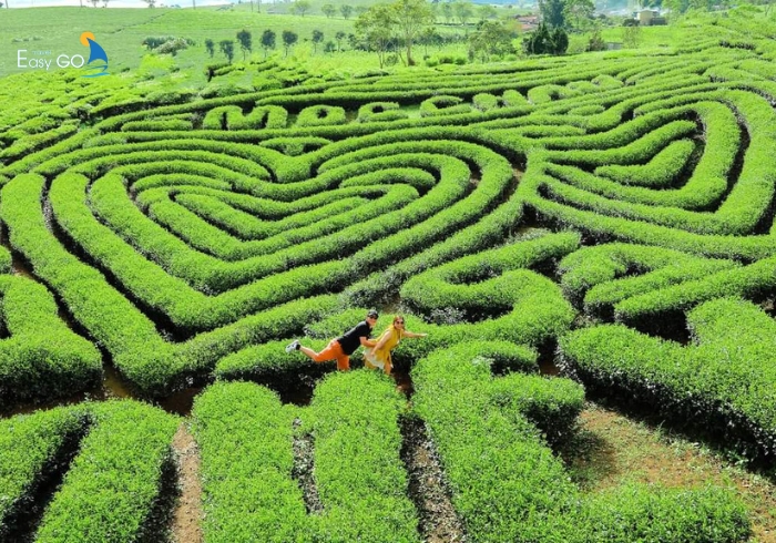 Ngày thứ hai, hướng dẫn viên sẽ đưa bạn đến với Đồi chè Trái tim và Rừng thông Bản Áng - nơi được mệnh danh là “Hồ Xuân Hương” của Tây Bắc.