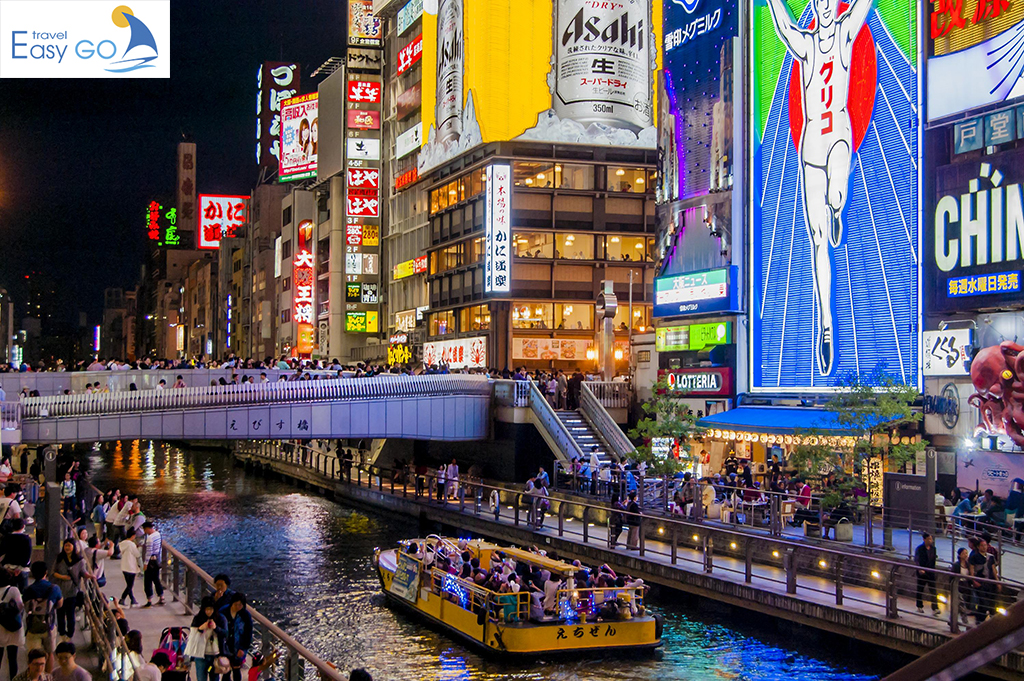 Tối: Quý khách di chuyển về Thành Phố Osaka di chuyển ra nhà hàng dùng bữa tối. Sau đó làm thủ tục nhận phòng khách sạn. tự do khám phá thành phố về đêm.